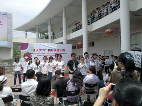 该活动培养和弘扬了符合新时代特征的人文与社会科学学院文化,给广大师生提供一个表现自己艺术创造能力、展示青春活力的舞台,为学院留下了一笔宝贵的精神财富。海闻副校长对本次活动给予了高度评价,认为该活动不仅丰富了课余生活,而且充分调动了同学们的想象力和创造力。颁奖仪式在一片掌声中顺利结束,同时标志着“让人文飞”院衫设计比赛画上了圆满的句号。(文/吕程 田思钰,图/罗嫣、王琛琛)