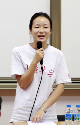新生代表社会学专业的易丽叶则抒发了作为一名南燕新生对于南国燕园和人文学院的激情宣言:今天我以你为骄傲,明天你将以我为荣耀!