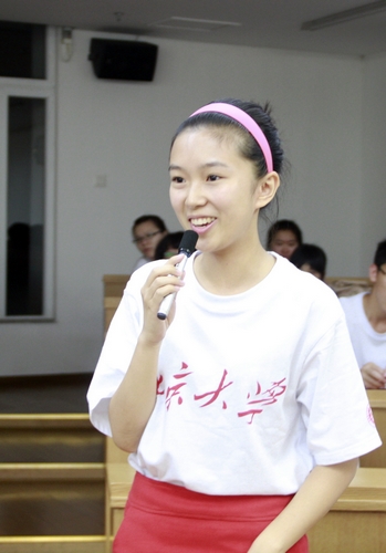 传播学专业2009级学生杨乐作为在校生代表第一个发言,她声情并茂地表达了对南国燕园的感情,并与新生分享了她在社会活动上的相关经验。她说,南燕是一个充满机遇的创新舞台,“我们的创新是南燕的创新,我们的进步也很有可能是南燕的进步”。
