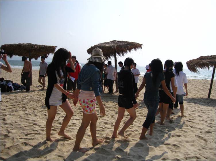 在沙滩排球、足球,游泳、扑克、穿越海岸等一系列活动中,同学们在体力与智力的较量中加深彼此的了解,在辽阔优美的景色中感受生活,畅谈未来。脚踩银沙,沐浴阳光,在海涛的击鼓声中,奋力挥臂,在一波波的波花中感受大海的力量与柔美。