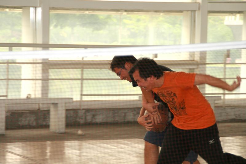此次运动会于4月26日上午九点开始,活动项目丰富多彩,田径方面有50米混合绑腿跑;球类方面有毽球(混合对攻)、篮球(混合)、足球、羽毛球(混双);另外还有棋牌类:八十分(混合)、象棋、五子棋;拔河(混合)、跳绳(双人)、呼啦圈等。由于所有比赛规则均与正式规则不同,本着娱乐第一,比赛第二的原则,来自我院社会、心理、传播三个专业的学生均跃跃欲试,大家自愿结成小组,积极报名参加各项比赛,在裁判的一声哨响之后,羽毛球馆内加油声、掌声、笑声不断,现场氛围热烈而火爆,对于这样一场非正式的、趣味运动会来讲,能让大家有机会参与到团体的运动中来,本身就是一件有意义的活动。